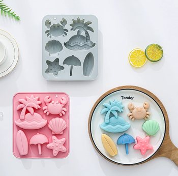 Novo Molde de Silicone em Forma de Praia Tropical com 6 Cavidades para DIY, Molde de Chocolate de Árvore de Coco de Verão